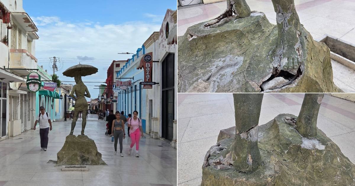 La scultura conosciuta come "la donna con l'ombrello", unico elemento decorativo rimasto nel boulevard pedonale della città di Holguín, è in pericolo di cadere a causa del grave deterioramento della sua base.