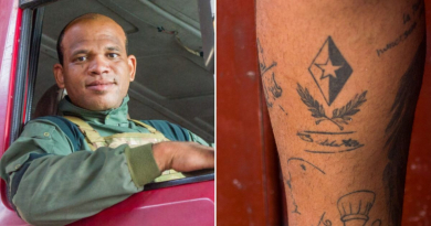 Bomber cubano espone un tatuaggio allegorico di Fidel Castro sul suo corpo
